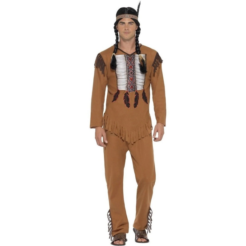 Item Includes:Top.Pants.Headband.Fit and Sizing:See size chart image for details.Fabrics and Care:100% Polyester.Hand wash, hang dry.Please note: Shoes and wig not included.Traditional.This Native Western Warrior Mens Costume is great for international day