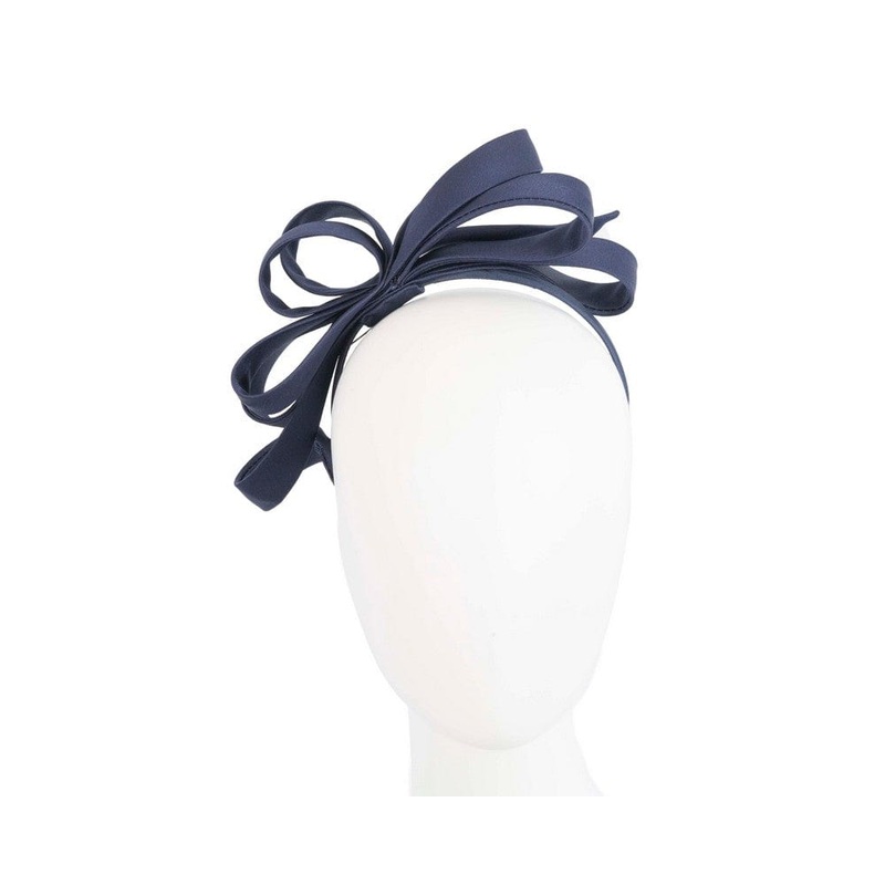 Stylish navy bow fascinator from latest Max Alexander racing collection. Designed in Australia Renown Max Alexander brand Comfortable headband