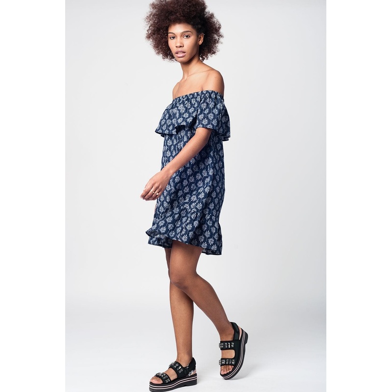 Navy Off Shoulder Midi Beach Dress