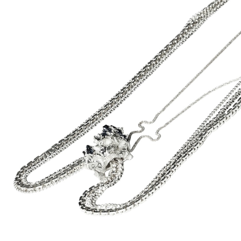 The Anomaly Neve Necklace by Zydrune made in Sterling Silver and Silicon Carbide.Handmade in the heart of London, keeping innovative and ethical jewellery making at the forefront of the production.