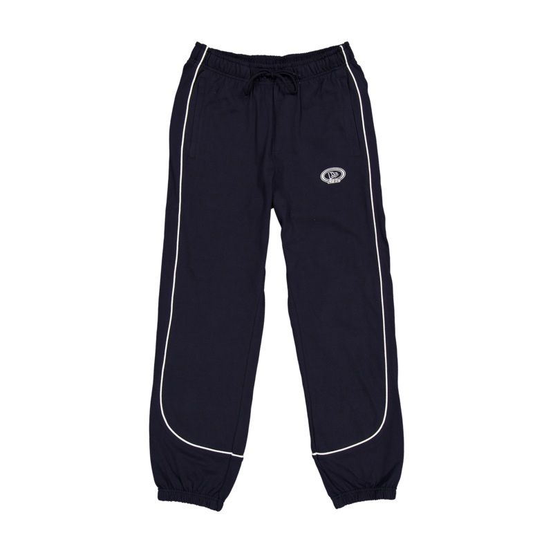 The New Era Branded Shoreline Navy Knit Jogger features:NE2K logo below left pocketElasticated waistband with drawstringPiping through legsColor: NavyFabrication: 50% Organic Cotton, 50% Recycled Cotton