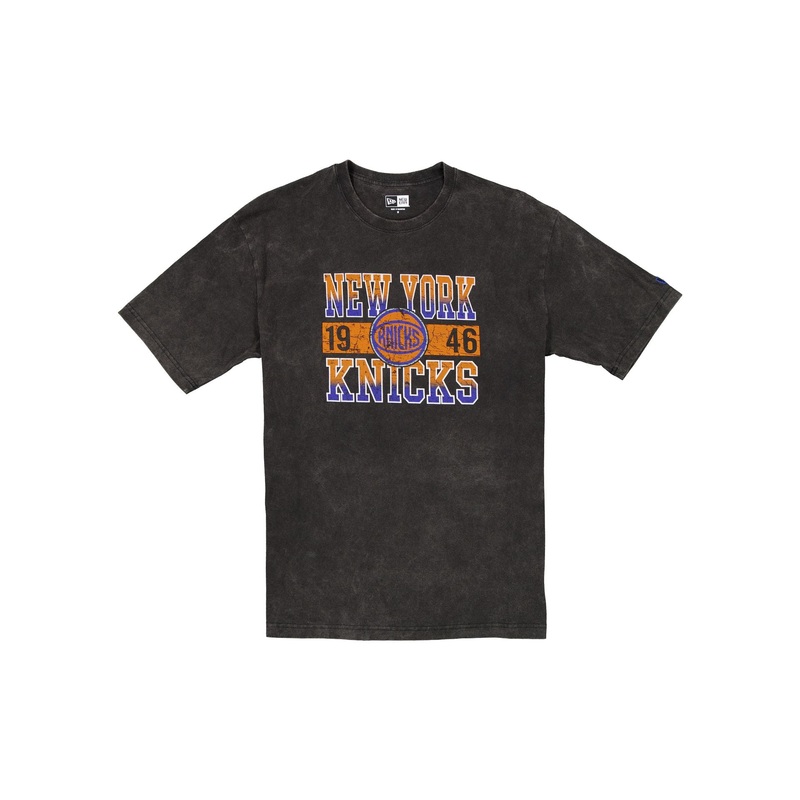 The New York Knicks Oversized Washed Black T-Shirt features a screen-printed Knicks graphic at the front with a washed fabrication.