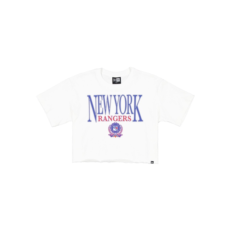 The New York Rangers Throwback Prep Women's Cropped T-Shirt features a screen-printed Rangers wordmark above a team emblem at the front.Fabric: 100% Cotton
