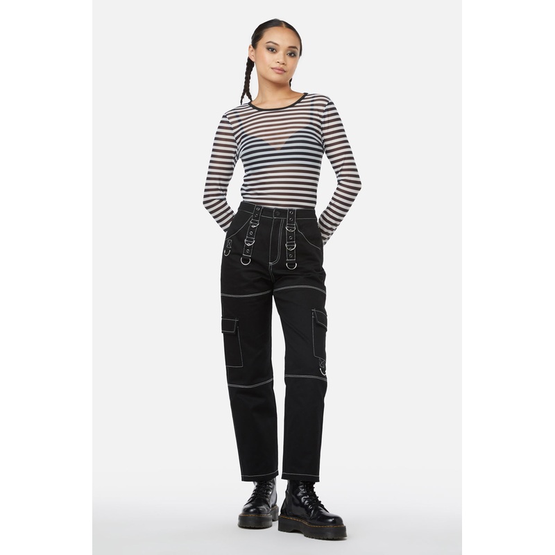 Contrast Stitch Cargo-Features D-Ring Waist Detail-Straight Leg Cut-Cargo Pockets At Side Seams-Made From Cotton Elastane Blend-Available In BlackProduct Code: BGFX138