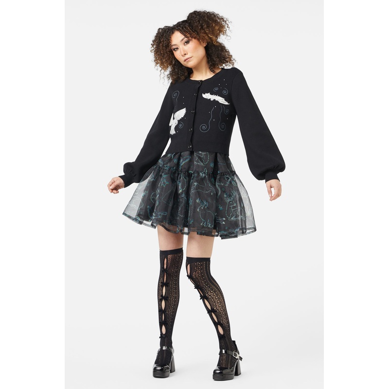 Embroidered Cardigan-Features 'Night Flight' Embroidery-Has Button Front-Rounded Neckline-Long Sleeves With Balloon Shape-Made From Cotton-Available In BlackProduct Code: BGFY033