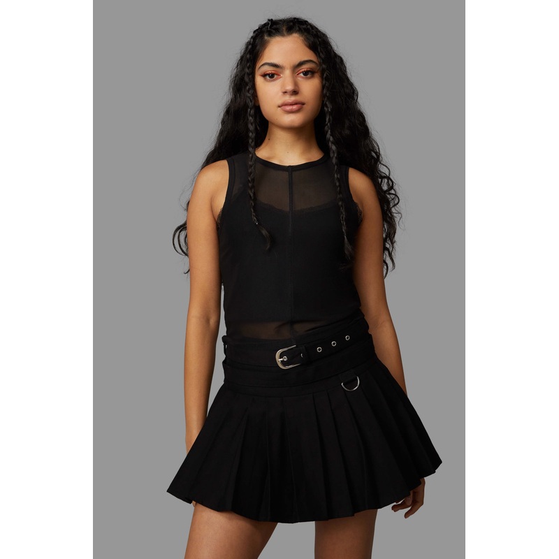 Mesh Tank-Exposed Seam Front Detail-High Neck-Sleeveless-Cropped Length-Made From Cotton/Elastane Blend-Available In BlackProduct Code: BGFW062