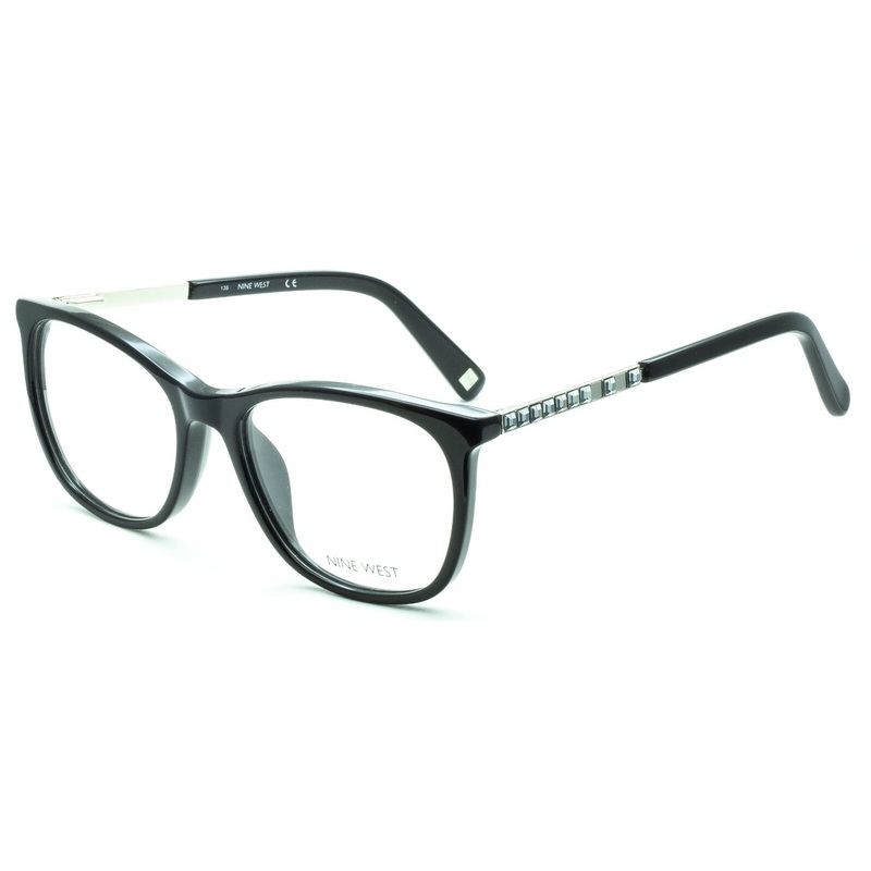 NINE WEST Full Rim Frames - 100% Authentic NW5130 001 Gloss black acetate frames and arms Polished stone set sides Precision spring hinges for a comfort fit Brand new - Never been worn Lens Width = 52mm Frame Height = 44.5mm Bridge = 17mm Temple (Arm Lengt