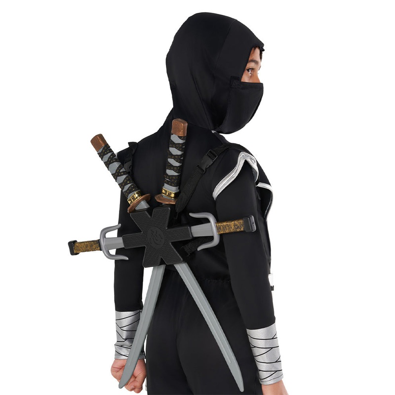 Children inspired by their favourite ninja movie or TV show can now dress up as one with this Ninja Weapons Backpack Accessory Set. Included are two ninjatosninja swordsand a stealthy holder for them featuring back straps. The holder is worn like a backpack and allows for easy access to the swords over the shoulder. The perfect finishing touch to an all-black ninja costume. They’ll be ready for battle (or a birthday party) in no time!