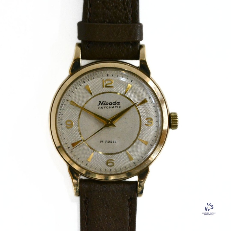 An Elegant Looking Vintage Nivada Automatic with a 9ct Gold Case and Engine Turned Bezel