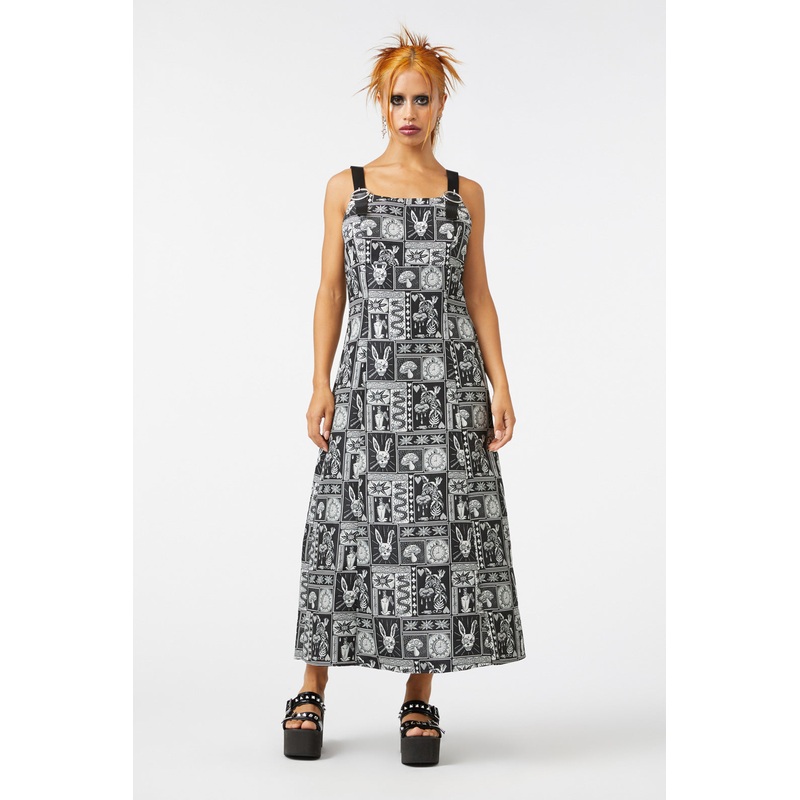 Graphic Dress- Intricate Brocade Fabric- Fitted Bust- Flared Skirt- Midi Length- Pu Fabric Straps- Lined- Made From Polyester Brocade- Available In BlackProduct Code: DGFV216
