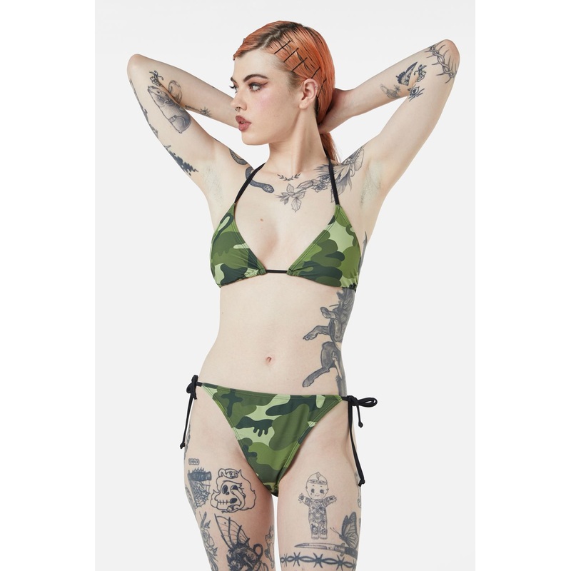 Bikini Bottom – Tie Straps At Sides (Adjustable) – Lined – Camo Graphic Fabric – Stretch Fabric – Camo Graphic Fabric – Made From Nylon/Elastane – Available In Green