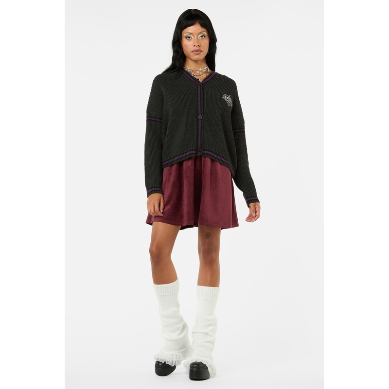 Gothic Style Cardigan- Slouchy Shape- Dropped Shoulder- Long Sleeves- Relaxed Fit- V-Shaped Neckline- Button Closure At Front- 'Not Afraid' Embroidery Placement On Front Chest And Back- Rib Knit On Sleeve Cuff, Neckline And Hem- Made From Soft Knitted Cott