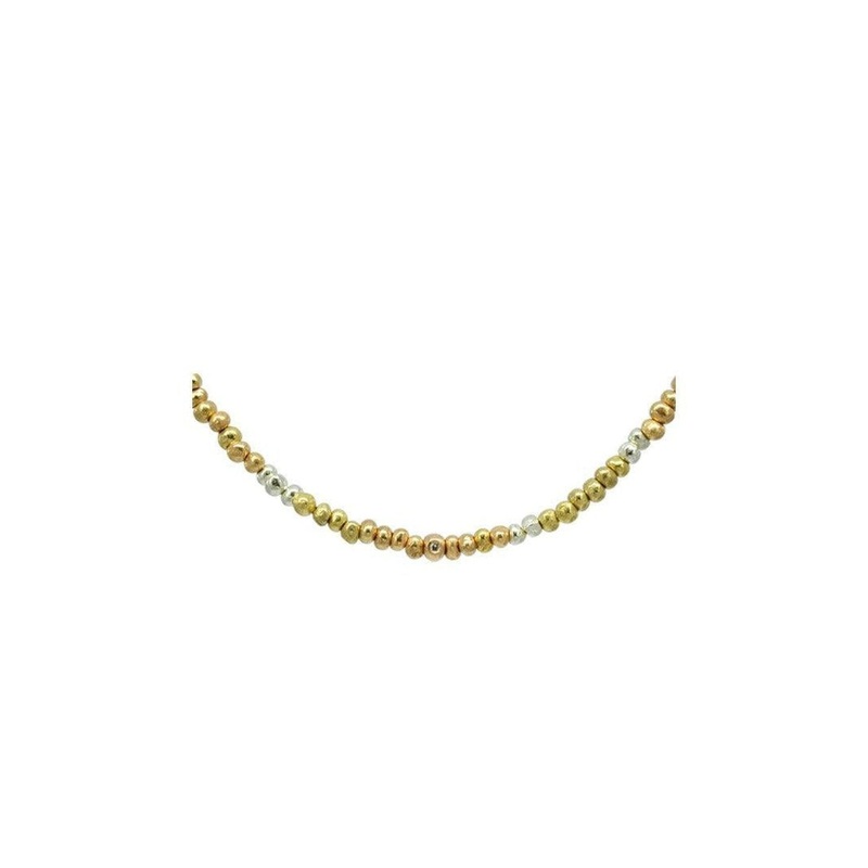 Tricolour Brilliance: This necklace is a celebration of three gold colours yellow, rose, and white carefully crafted into solid nuggets. Each nugget, measuring approximately 4mm, contributes to the necklace’s stunning tri-gold aesthetic.