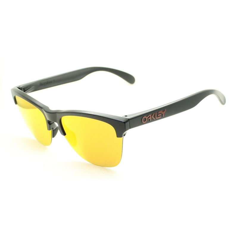OAKLEY FROGSKINS Half Rim Sunglasses100% Authentic - OO9374-0463Matte black acetate frames and arms inlaid with red Oakley logosOrange Prizm tinted lensesBrand new - Never been wornLens Width = 63mmFrame Height = 49.5mmBridge = 10mmTemple (Arm Length) = 13