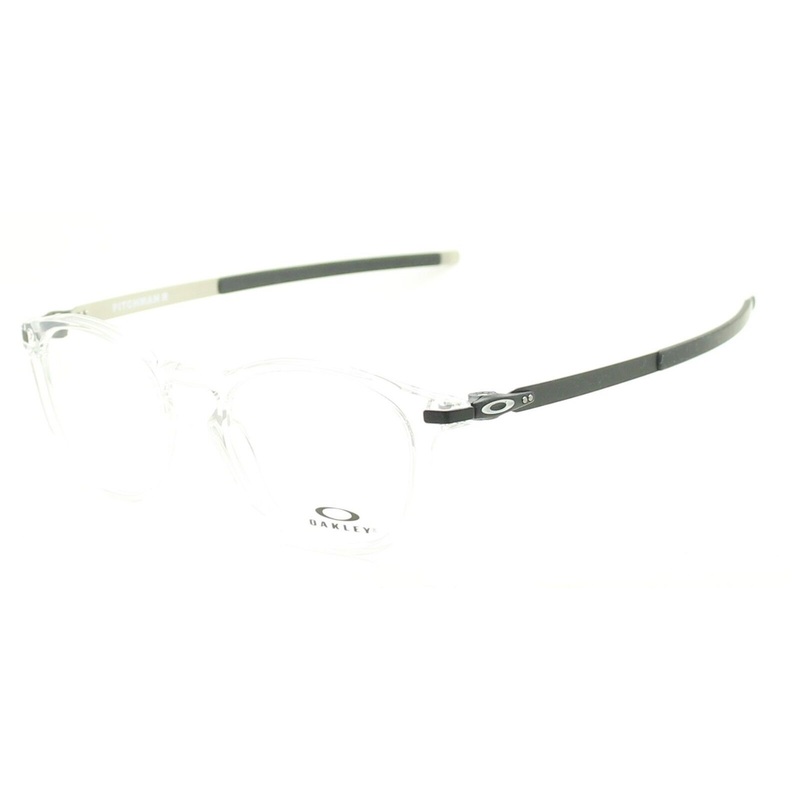 OAKLEY PITCHMAN RFull Rim Frames -100% AuthenticOX8105-0450 ClearGloss transparent crystal acetate framesSatin black over silver metal arms with black rubber end coversBrand new - Never been wornLens Width = 50mmFrame Height = 45.5mmBridge = 19mmTemple (Ar