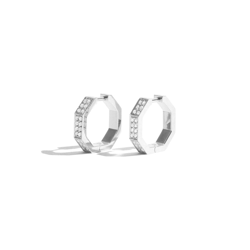 The Octogone Earrings in 18k Fairmined Certified White Gold and paved with lab-grown diamonds.Sold as a pair. An original revisiting of the creole, paved with lab-grown diamonds that reflect light to the rhythm of movement.Octogone. A celestial and minimal