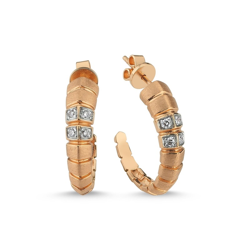 The Ohopa Hoop Earrings are made from 14K rose gold and white diamondsThe Ohopa Hoop Earrings are part of the Dragon Lady Collection bySelda Akgl