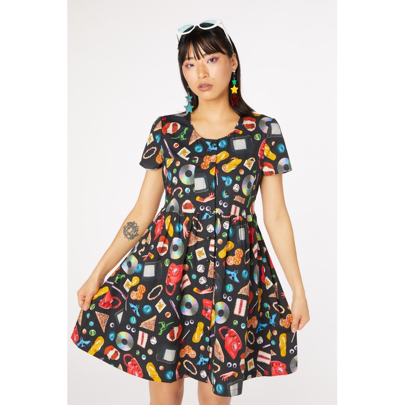 Printed dress- Round neckline- Short sleeve style- All over nostalgic print- Chest pocket - Available in blackProduct Code: DGFS261305