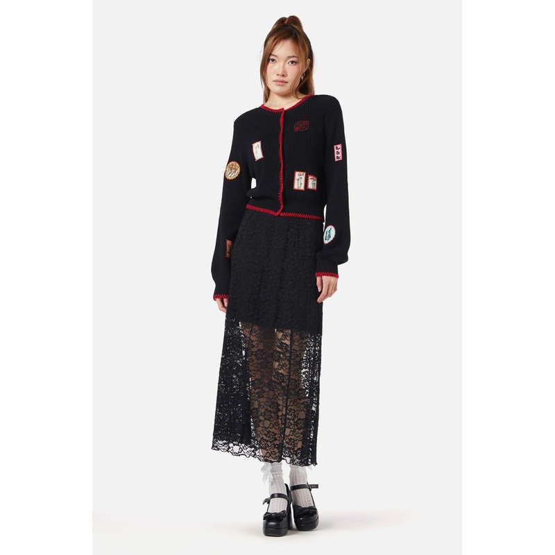 Patch Cardigan-Features 'Old Postal' Patch Artwork-Has Contrast Top Stitch Detail Around Placket, Cuff, Hem And Neckline-Balloon Style Puffy Sleeves-Soft Hand Feel-Made From Cotton-Available In BlackProduct Code: DGFY251