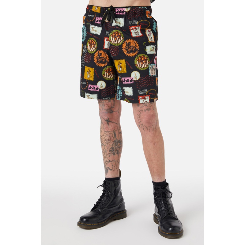 Printed Trunk-Features Old Postal’ Repeat Artwork-Drawstring Adjustable Waist-Soft Handfeel-Made From Cotton-Available In Multi