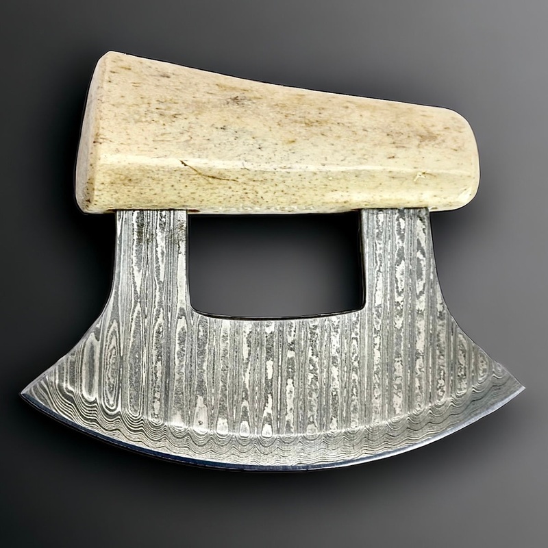 Delicately put, an Oosik is the baculum, or penile bone of the male walrus.Fossil Walrus Oosik Bone Ulu Knife made in AlaskaSize - 5 1/2" (Damascus Steel blade) *Stand is Included* Chopping board sold separately... Can only be shipped within the USA*