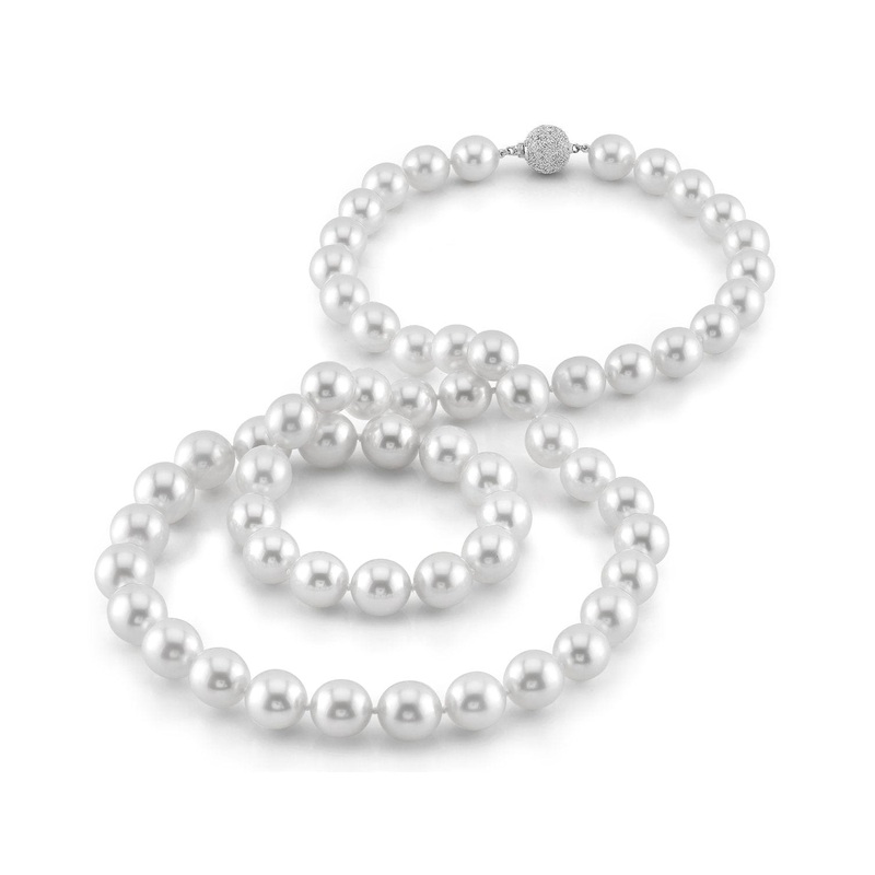This exquisite pearl necklace features stunning South Sea pearls that shine with a captivating luster. Each pearl gracefully transitions from 11mm to a striking 14mm in the center, creating a beautifully balanced design. You’ll appreciate the delicate silver overtone, enriched with hints of icy blue, that adds depth to the overall look. The necklace is carefully crafted with individual double knots on matching silk, ensuring both durability and elegance. Arriving in our signature presentation box, it includes a certificate of authenticity and a pearl care kit, making it a perfect gift or a luxurious addition to your collection.