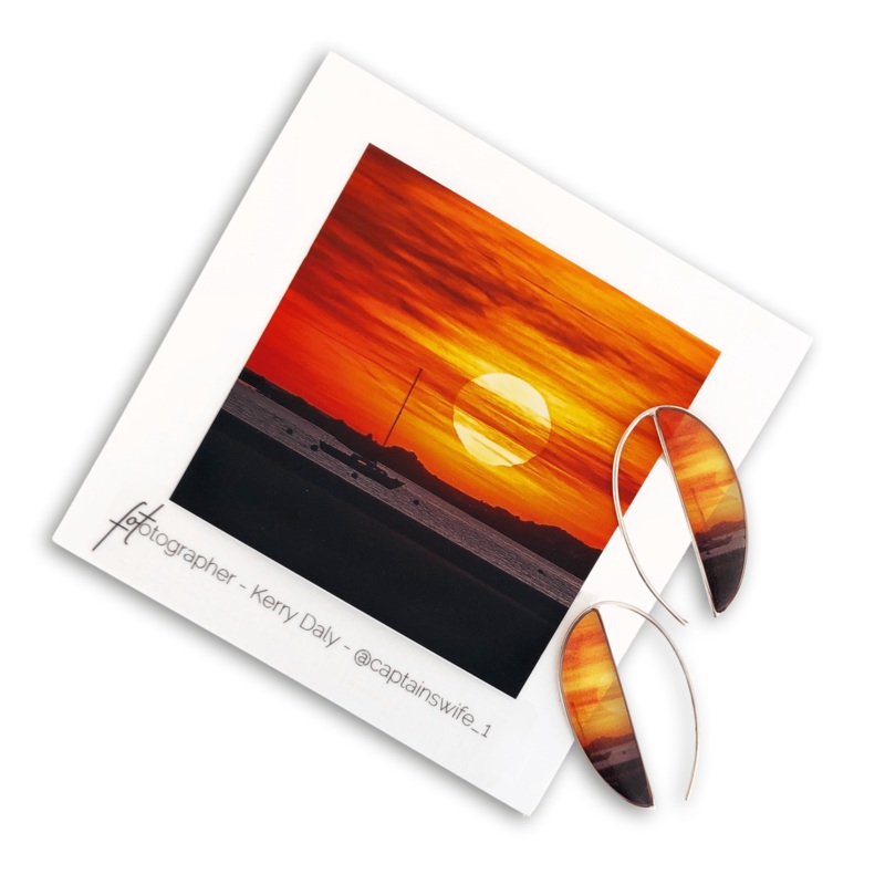 SUNSET EARRINGS FEATURE:These earrings dangleabout1.5 inches from the earlobe, creating an elegant modern look. They are feather light despite their length!The one of a kind image is coated in a waterproof resin. Wear them anywhere in any weather (humid, r