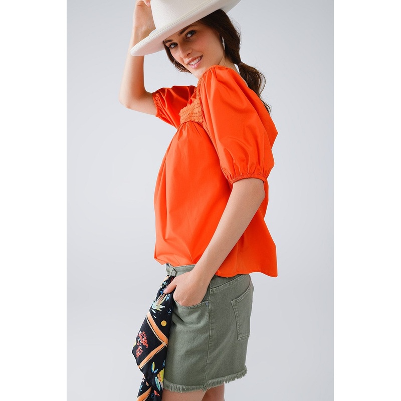 Embrace effortless style and bohemian charm with our Orange Top with Square Neckline and Short Balloon Sleeves, a must-have addition to your summer wardrobe.