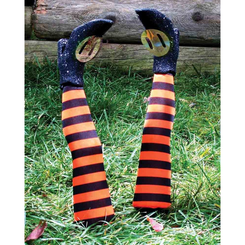 Wicked witchAdd a spooky touch to your outdoor decorations this Halloween with these Orange Witch Leg Grave Breakers. Comes with 2 foam legs with orange and black striped tights and witch shoes and 2 ground stakes.Item Includes:2 x Legs with stakes.Fit and