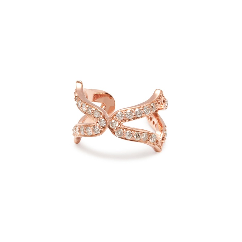 This beautiful pair of Oriental Ear Cuffs in Rose Gold are inspired by the oriental lotus flower. Set in 18ct rose gold vermeil with grey diamonds these stunning earrings look great worn as a glamorous pair or on their own as a single ear cuff.Part of a un