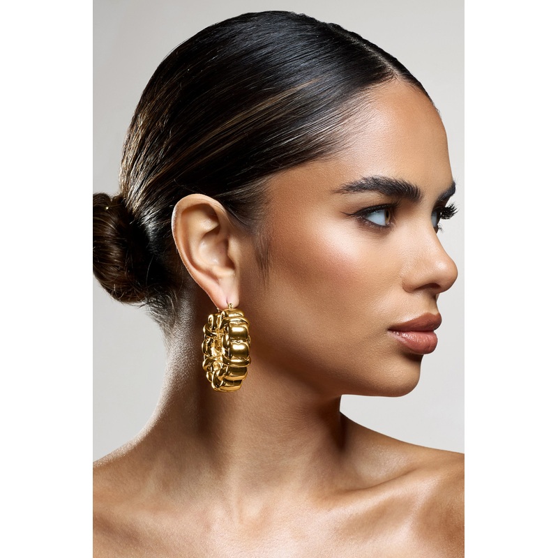 Crafted in a statement chunky design, its all in the details with Orli. These gold hoops would look perfect styled with a sleek bun during you next date night. Features - Gold toned - Chunky shape- Lightweight- Chain design- Hinge fastening Product Informa