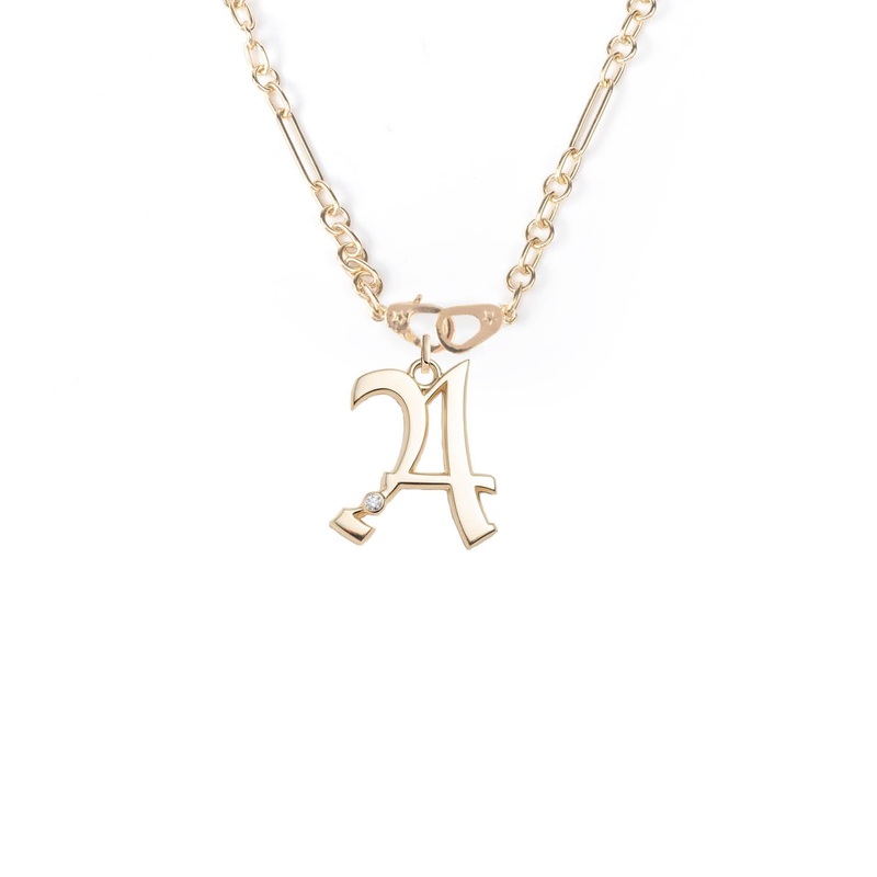 Handcrafted in 18 karat yellow gold and set with square cut diamonds, this Oversized Initial Small Mixed Clip Sister Hook Necklace this can represent a special moment, loved one, a last name. The necklaceis composed of oursmall mixed clip chainand anchored to the chain are sister hooks that fit perfectly intertwined with each other.