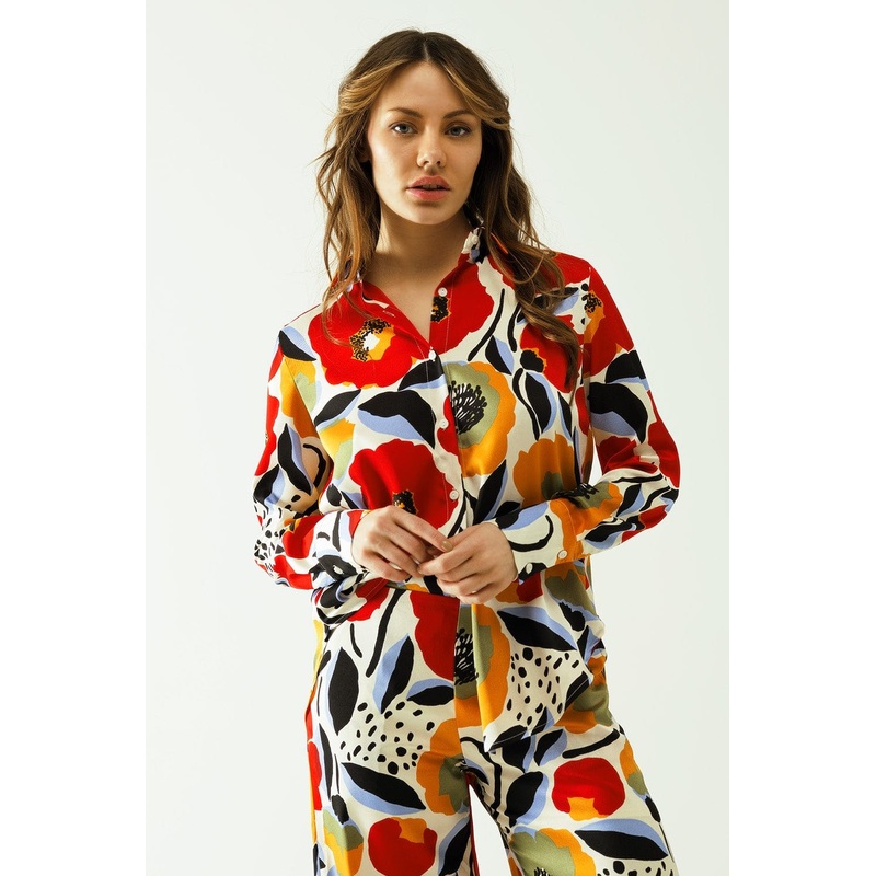 Introducing our Oversized Shirt with Poppies Designs a versatile and chic addition to your daily wardrobe. Crafted with attention to detail, this shirt features a delightful floral print, long sleeves, and button closure for a classic yet trendy look.
