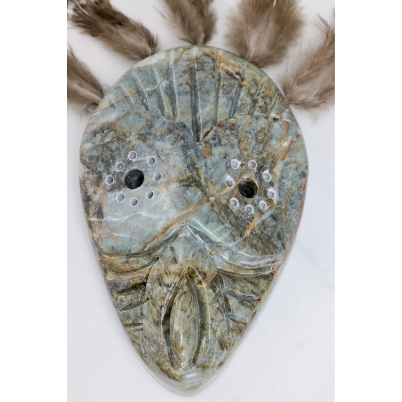 Handcrafted in Alaska from Soapstonewith Rooster FeathersSigned by Artist Size - 2 3/4" x 4 1/4"
