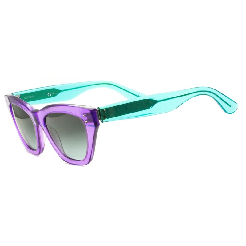 OXYDO Full Rim Sunglasses -100% Authentic - OX 1085/S H53PL Gloss transparent violet acetate frames, transparent aqua acetate arms Grey gradient tinted lenses Brand new Lens Width = 51mm Frame Height = 49.5mm Bridge = 18mm Temple = 145mm SUPPLIED WITH AN O
