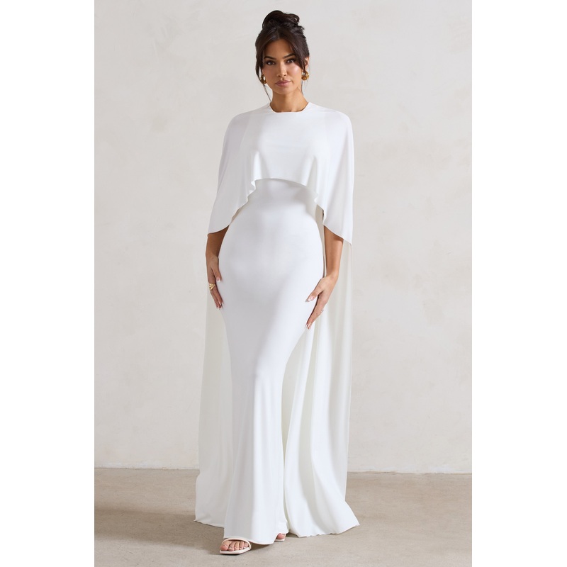 Captivate from all angles in Padma, our opulent white maxi dress. Crafted in a premium stretch jersey,Padma sculpts your frame with a flattering bodycon fit. Defined by floor length cape sleeves that command attention, try styling yours with a sleek bun an