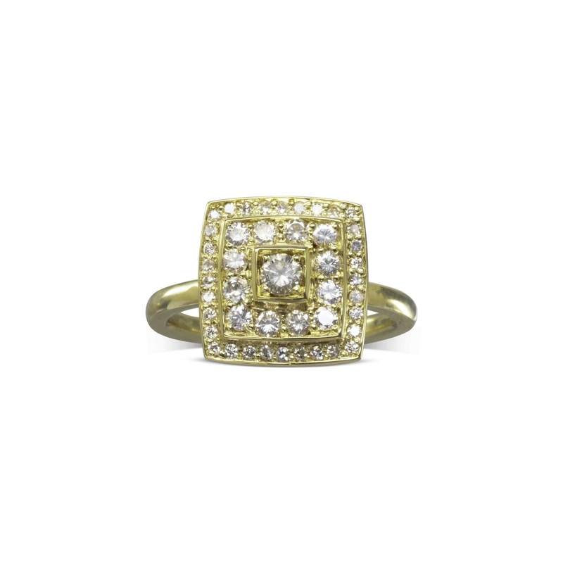 Pagoda Diamond Gold Cluster Engagement Ring