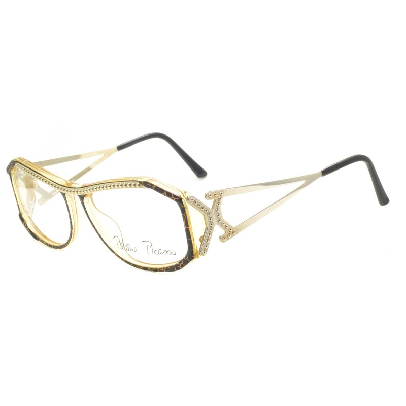 PALOMA PICASSO Full Rim Optyl Vintage Frames - 100% Authentic - 3739 11 Gloss transparent yellow frames with patterned black acetate fronts Polished gold cutout metal arms with gloss black acetate end covers Never been worn Lens Width = 56mm Frame Height =