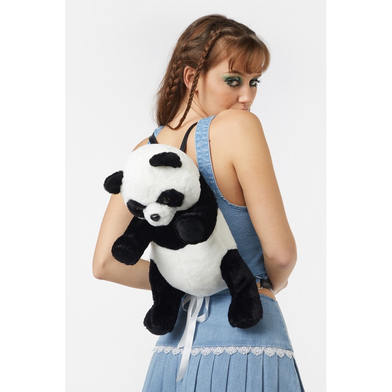 Panda Backpack- A fun and cute novelty bag- Plush panda teddy- Backpack design- Adjustable black vegan leather straps- Zipper on the back of the panda, with the tummy the funtioning bag- Approximately 42cm x 21cm in size (entire teddy)Product Code: DWFY110