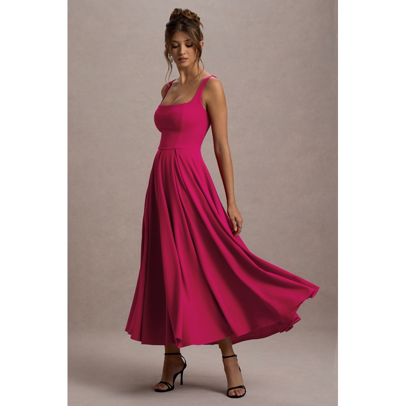 Exude a feminine charm in Parina, our romantic hot pink midi dress. Designed in a premium scuba crepe, this playful piece features a supportive square neckline and flowing pleated skirt. A stand-out staple, Parina is proof that keeping it simple doesnt mea