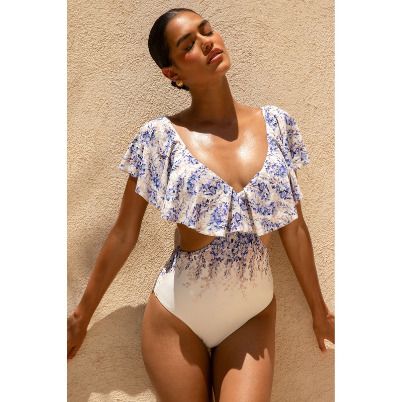 Paros | Wisteria Print Plunge-Neck Ruffled Swimsuit