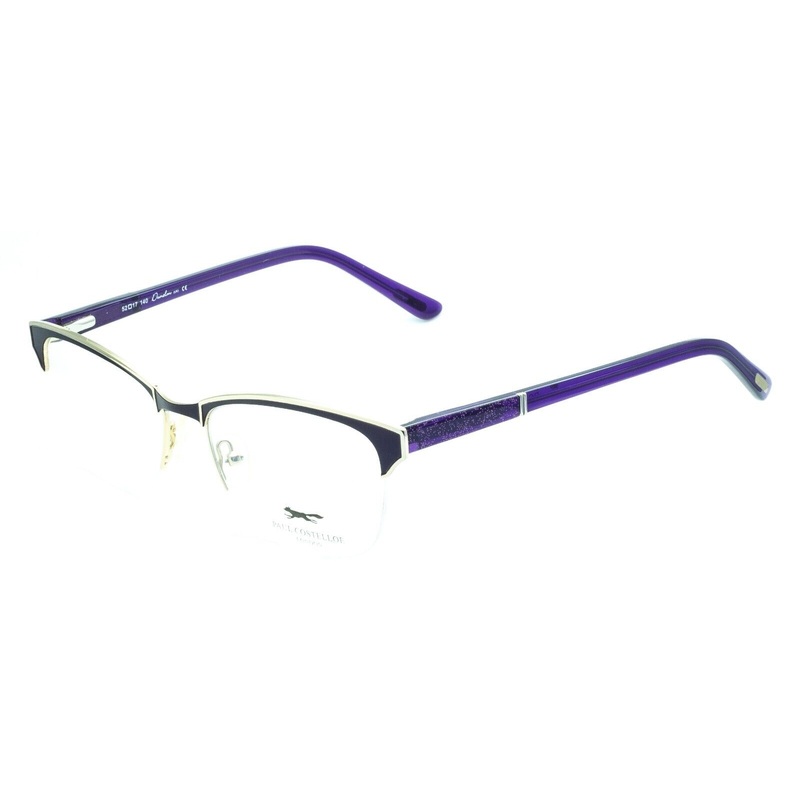 PAUL COSTELLOE Half Rim Frames - 100% Authentic - PC 5172 C3Polished purple and gold metal framesGloss glitter purple acetate sidesPrecision spring hinges and adjustable nose pads for Gloss transparent purple acetate arms inlaid with Nicole Farhi logosPrec