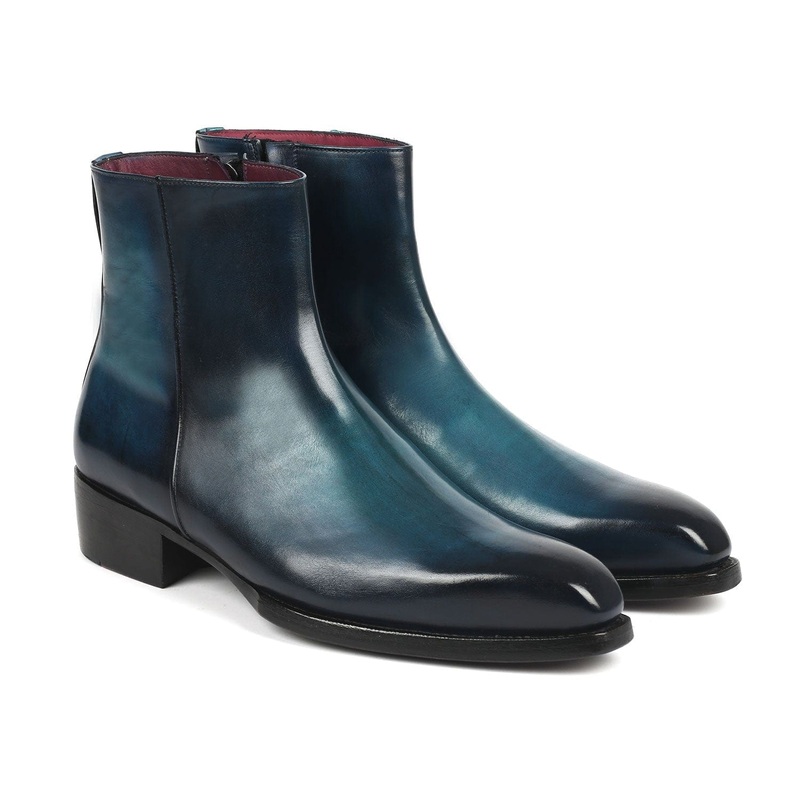 Paul Parkman Blue Burnished Side Zipper Boots Goodyear Welted (ID#BT3955-BLU)