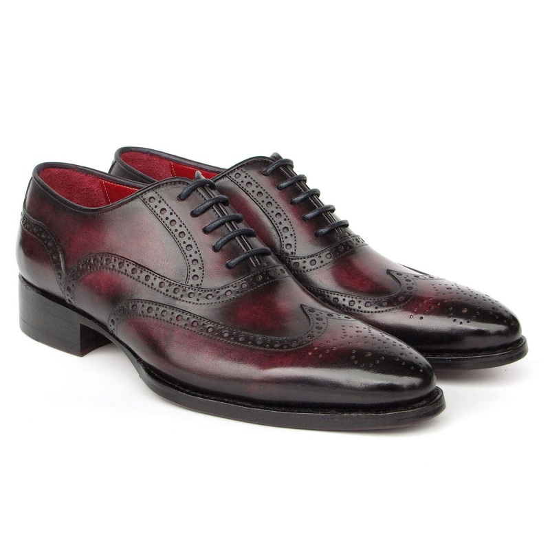 Handmade wingtip oxford shoes for men.Goodyear welted construction.Bordeaux burnished hand-painted leather upperLeather lining and inner soleThis is a made-to-order product. Please allow 15 days for the delivery. Because our shoes are hand-painted and cout