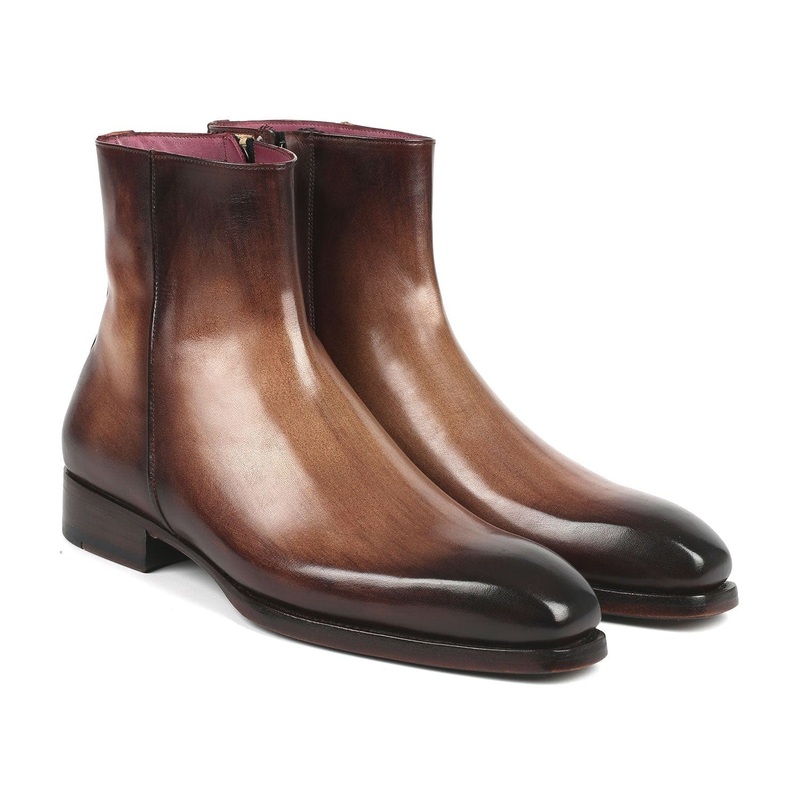 Paul Parkman Brown Burnished Side Zipper Boots Goodyear Welted (ID#BT3955-BRW)