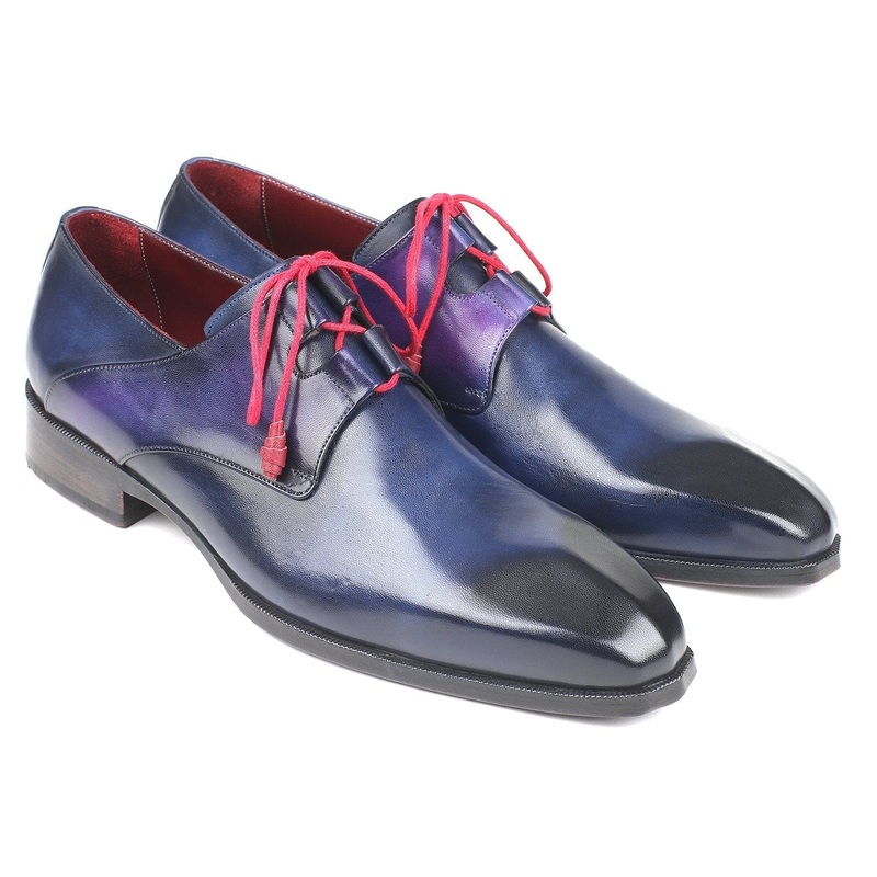 Angular shape sculpted toe.Ghillie lacing dress shoes.Blue hand-paintedcalfskin leather upper.Purple burnishedleather sole.Bordeaux leather lining and inner sole.This is a made-to-order product. Please allow 15 days for the delivery. Because our shoes are