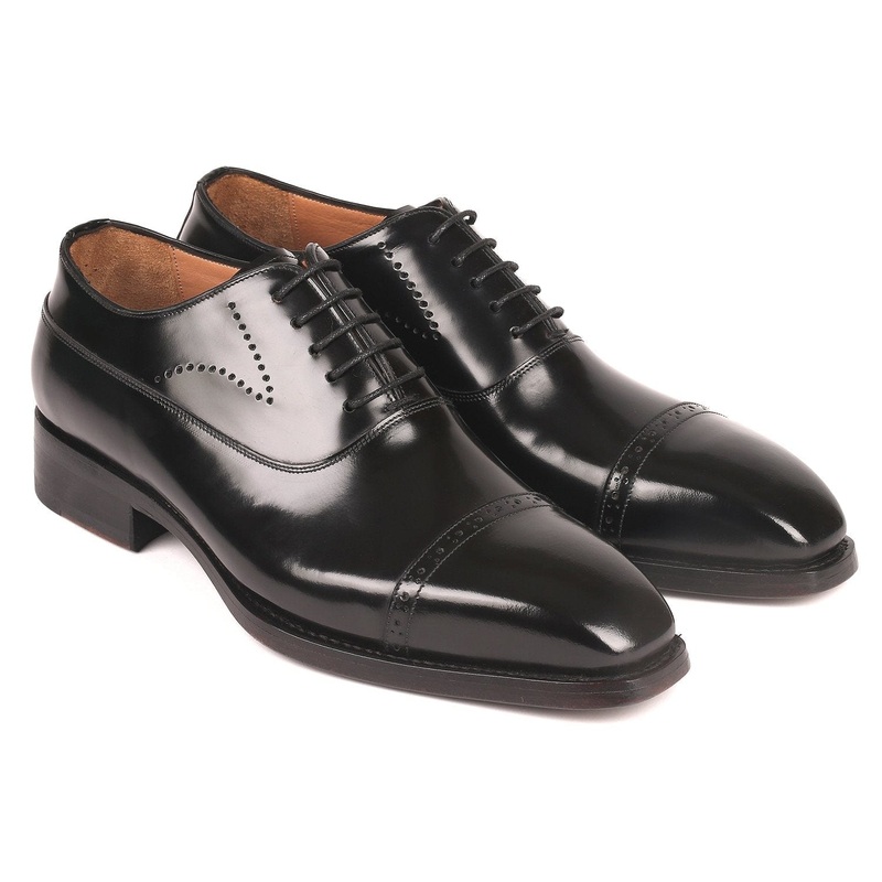 Black polished leatherupper.Goodyear welted construction with double leather sole.Natural leather lining and inner sole.Cap toestyleoxford shoesfor men.This is a made-to-order product. Please allow 15 days for the delivery. Because our shoes are hand-paint