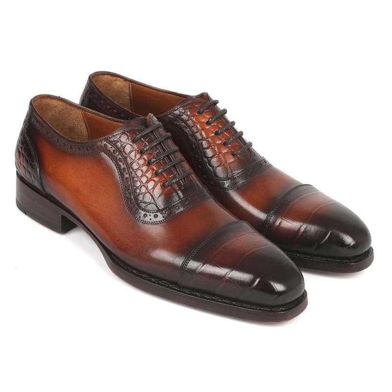 Browncrocodile embossed calfskin cap toe oxfords.Goodyear welted construction.Handcrafted fiddle waist double leather sole.Natural leather lining and inner sole.This is a made-to-order product. Please allow 15 days for the delivery. Because our shoes are h