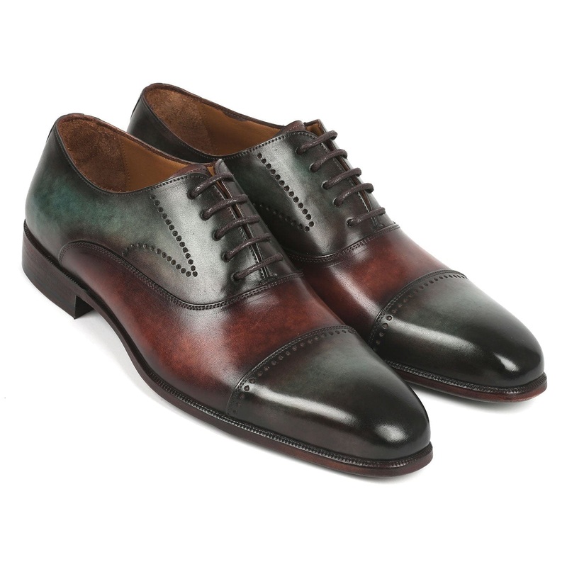 Paul Parkman Men’s Cap Toe Oxfords Green & Brown (ID#314-GRNBRW)