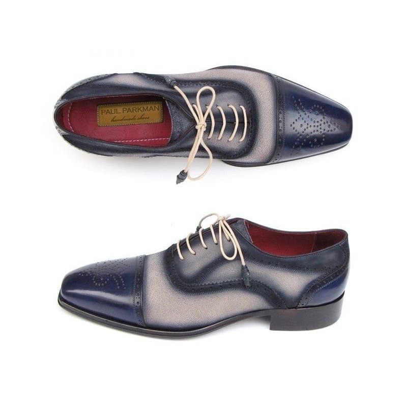 Paul Parkman Men’s Captoe Oxfords – Navy / Beige Hand-Painted Suede Upper and Leather Sole (ID#024-BLS)